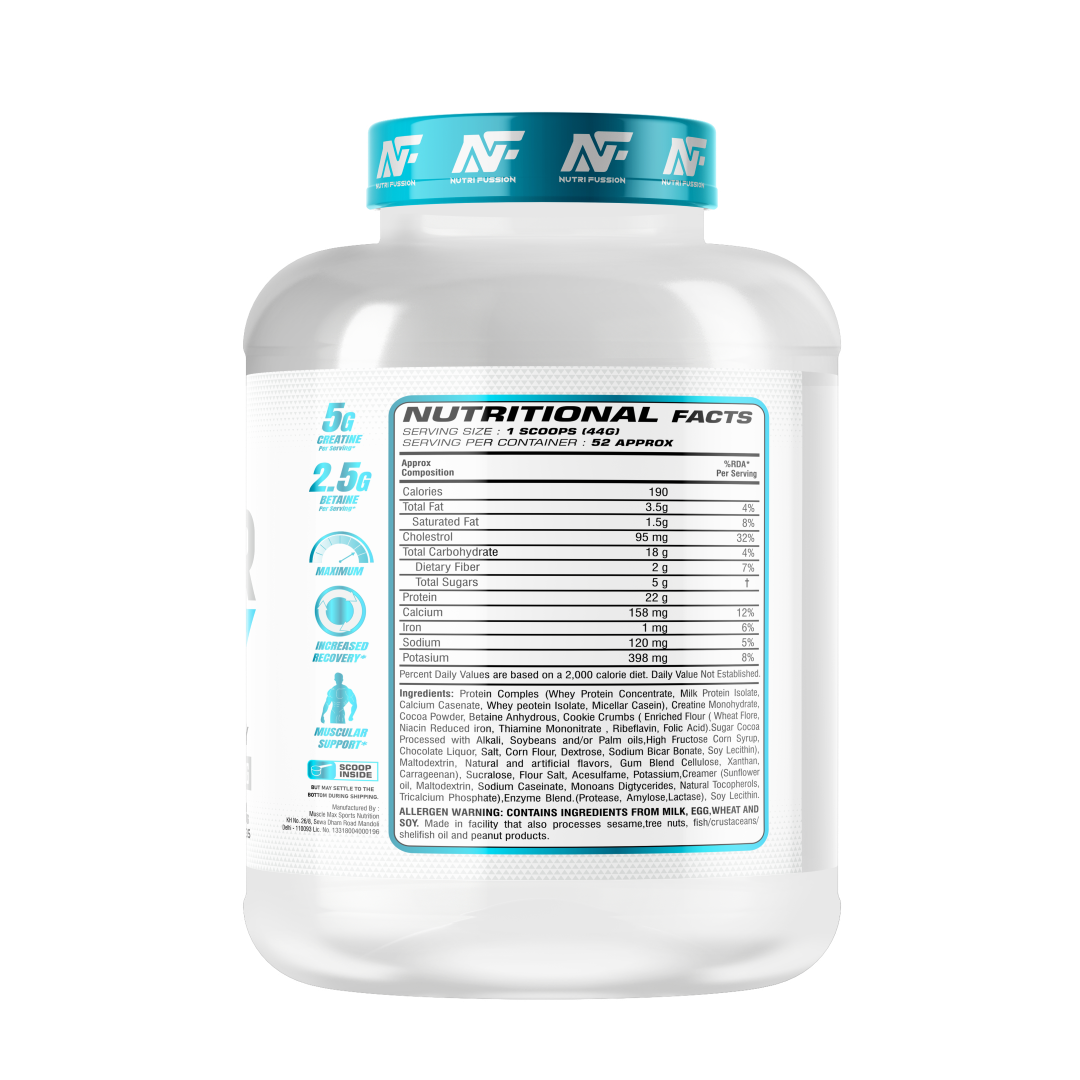 Power Whey by Nutri Fussion is engineered for athletes and fitness enthusiasts who need a balanced blend of protein and carbohydrates for post-workout repair. With 22g of protein, it provides the necessary amino acids to support muscle protein synthesis, while the 18g of carbohydrates help replenish glycogen levels lost during intense training sessions.